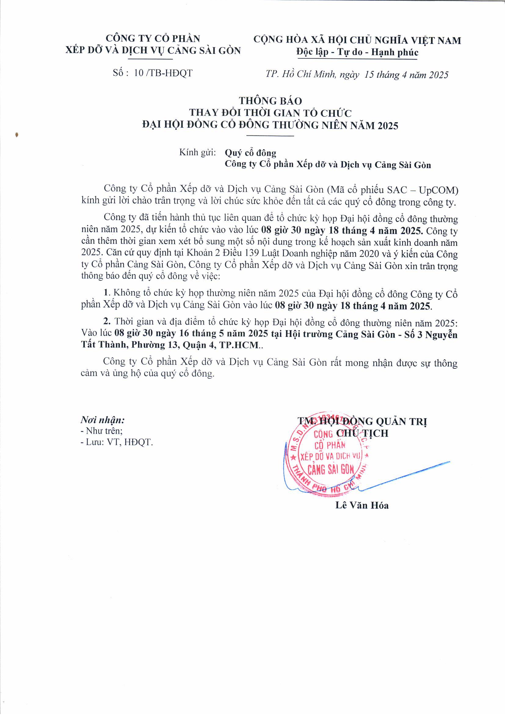 • THÔNG BÁO THAY ĐỔI THỜI GIAN TỔ CHỨC ĐẠI HỘI CỔ ĐÔNG THƯỜNG NIÊN 2025.