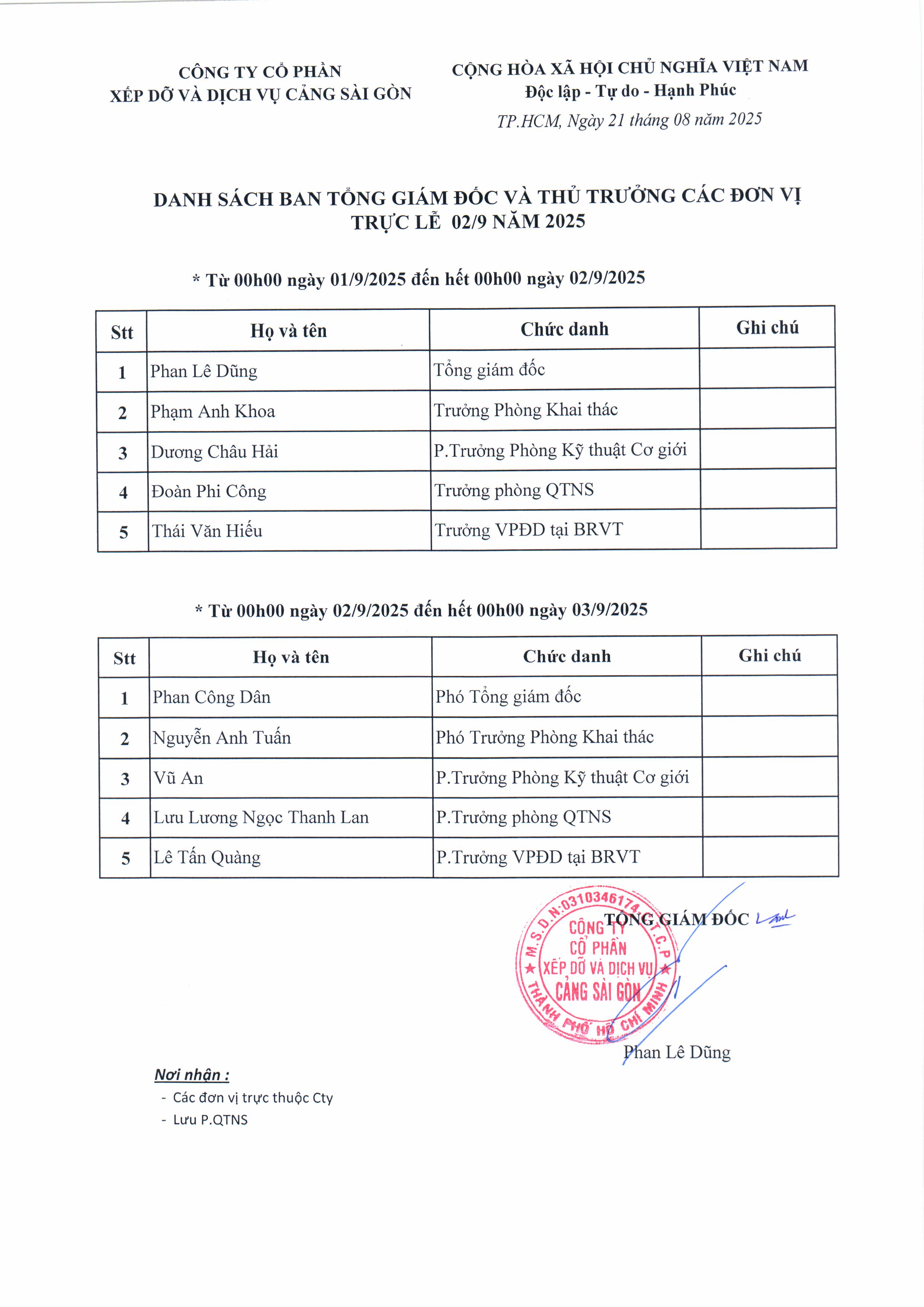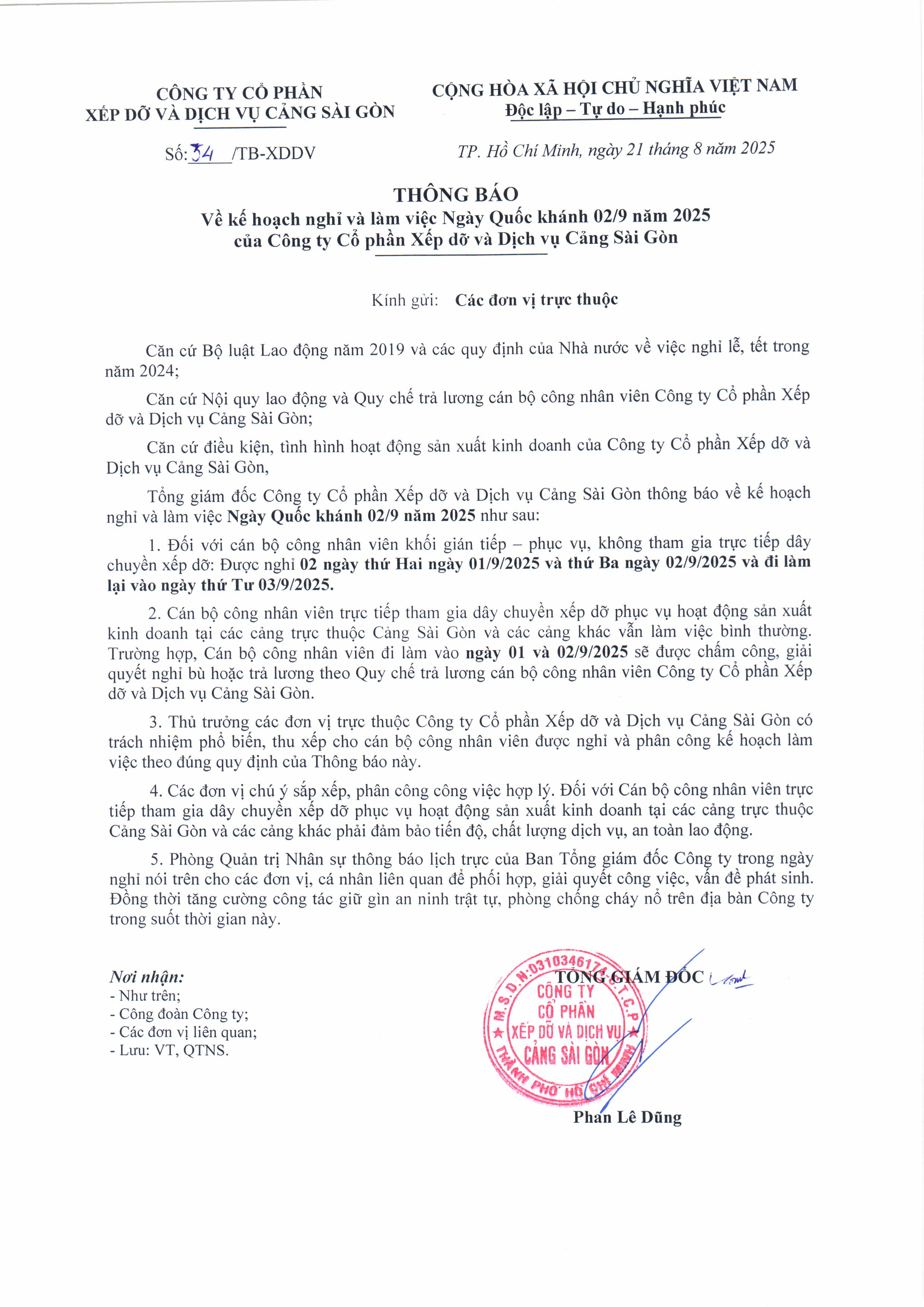 Thông báo kế hoạch nghỉ và làm việc ngày Lễ 02-09-2025